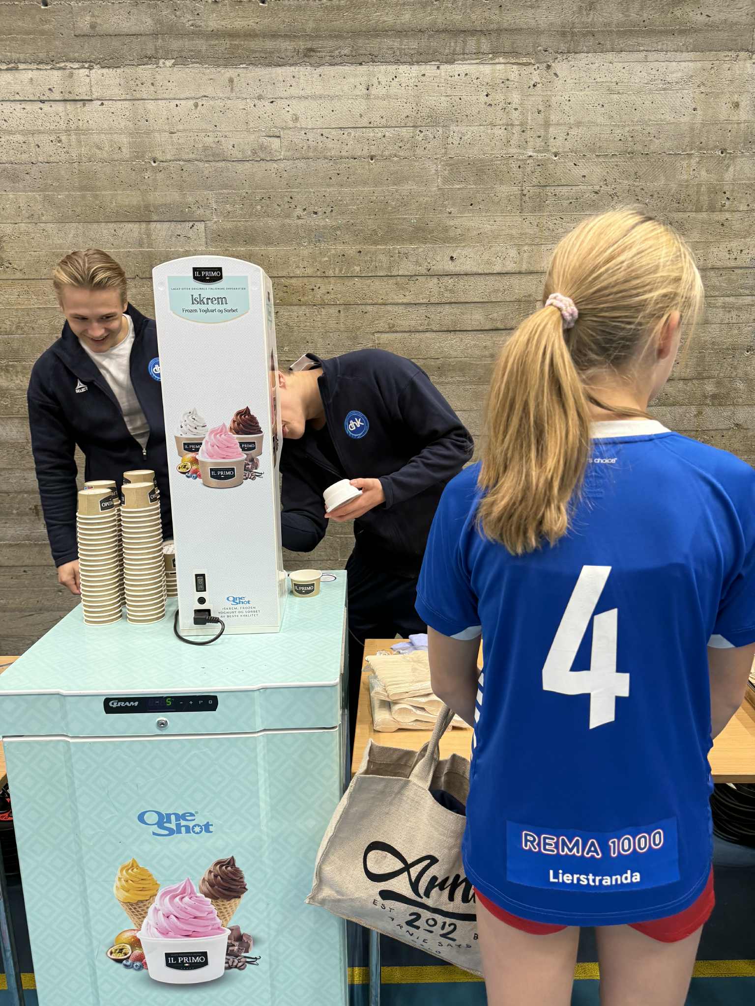 Kampsponsor Servicegrossisten toppet det hele med å dele ut deilig is til alle som kom på kampen. Slike kamper er akkurat det vi ønsker oss, en kveld der barn og familier fra breddeklubbene rundt oss samles i hallen, har det gøy og kan bygge samhold i klubb og lag.